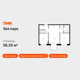 Продаётся 2-комн. квартира площадью 58,2 кв.м на 6 этаже 9 этажного дома (Корпус 3, Секция 1) проекта ПИК Зея парк. Светлый просторный подъезд на уровне земли, функциональная планировка, большие окна, без отделки. ''Зея парк'' - новый квартал со всем необходимым для комфортной жизни. До центра Благовещенска - 15 минут. Внутри ''Зея парка'' много места для тихих прогулок и активного отдыха. В каждом дворе будет парк с детскими и спортивными площадками. Рядом с домами пройдёт широкий пешеходный бульвар, где мы установим удобные скамейки и высадим кустарники и цветы и взрослые деревья. В квартиры и дворы сможет беспрепятственно проникать солнце благодаря переменной высоте корпусов - 9 и 16 этажей. В домах будут просторные и светлые подъезды с дизайнерской отделкой, витражным остеклением и двумя выходами на уровне земли: во двор и на улицу. В квартирах большие окна, застеклённые балконы и лоджии — будет светло и уютно даже зимой. Все квартиры сдаются с предчистовой отделкой: самые грязные и шумные работы к моменту выдачи ключей уже закончатся. На первых этажах домов разместятся магазины, кафе и другие сервисы, а на подземных — индивидуальные кладовые. В 1013 минутах пути на машине — парк Дружбы, аквапарк ''Плаза'' и ТРЦ ''Острова''. Рядом с жилым кварталом есть автобусная остановка, от которой можно добраться в любую часть города. Артикул 879201 (Застройщик ООО ''СЗ ''ПИК Благовещенск'')