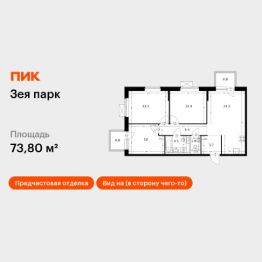 Продаётся 3-комн. квартира площадью 72,2 кв.м на 2 этаже 9 этажного дома (Корпус 1, Секция 1) проекта ПИК Зея парк. Светлый просторный подъезд на уровне земли, функциональная планировка, большие окна, предчистовая отделка. ''Зея парк'' - новый квартал со всем необходимым для комфортной жизни. До центра Благовещенска - 15 минут. Внутри ''Зея парка'' много места для тихих прогулок и активного отдыха. В каждом дворе будет парк с детскими и спортивными площадками. Рядом с домами пройдёт широкий пешеходный бульвар, где мы установим удобные скамейки и высадим кустарники и цветы и взрослые деревья. В квартиры и дворы сможет беспрепятственно проникать солнце благодаря переменной высоте корпусов - 9 и 16 этажей. В домах будут просторные и светлые подъезды с дизайнерской отделкой, витражным остеклением и двумя выходами на уровне земли: во двор и на улицу. В квартирах большие окна, застеклённые балконы и лоджии — будет светло и уютно даже зимой. Все квартиры сдаются с предчистовой отделкой: самые грязные и шумные работы к моменту выдачи ключей уже закончатся. На первых этажах домов разместятся магазины, кафе и другие сервисы, а на подземных — индивидуальные кладовые. В 1013 минутах пути на машине — парк Дружбы, аквапарк ''Плаза'' и ТРЦ ''Острова''. Рядом с жилым кварталом есть автобусная остановка, от которой можно добраться в любую часть города. Артикул 887650 (Застройщик ООО ''СЗ ''ПИК Благовещенск'')