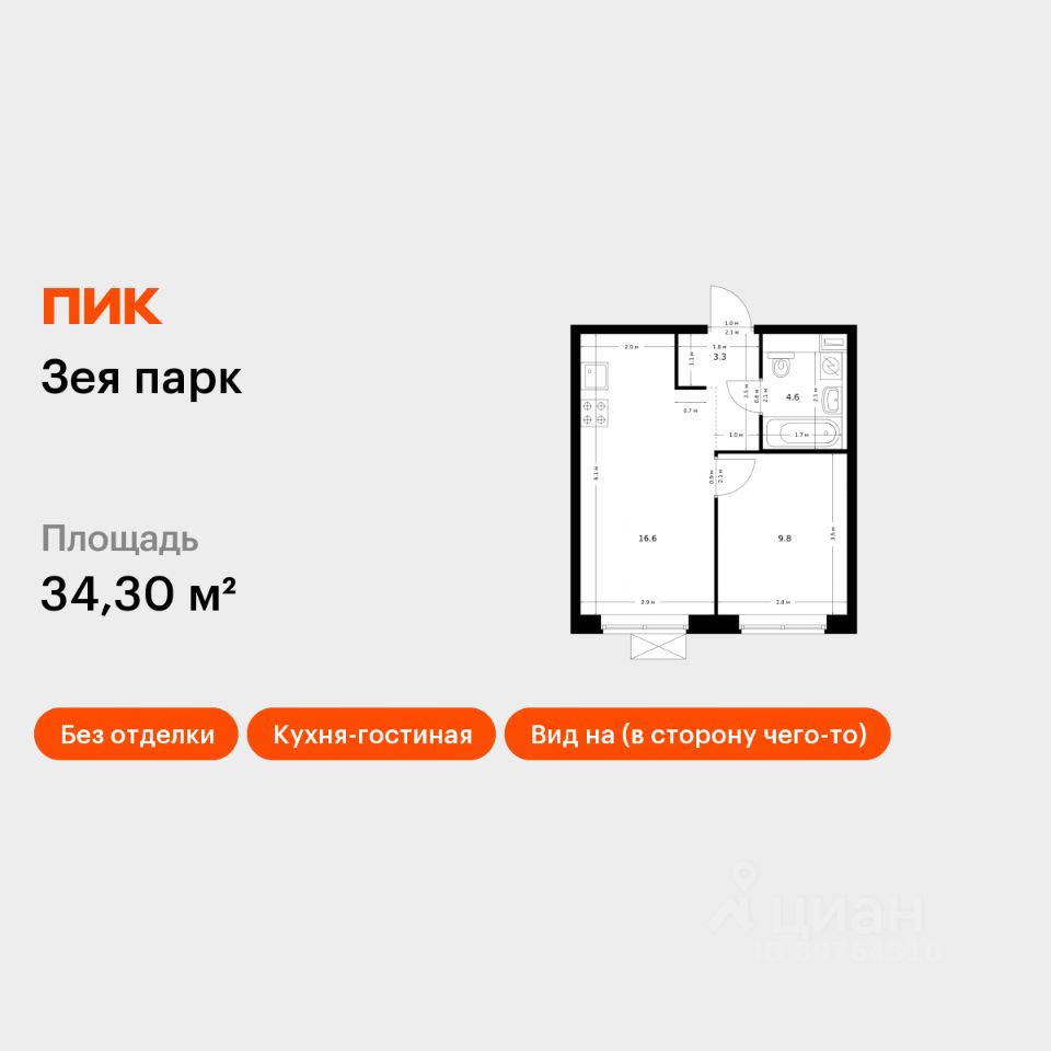Продаётся 1-комн. квартира площадью 34,3 кв.м на 13 этаже 16 этажного дома (Корпус 4, Секция 1) проекта ПИК Зея парк. Светлый просторный подъезд на уровне земли, функциональная планировка, большие окна, без отделки. ''Зея парк'' - новый квартал со всем необходимым для комфортной жизни. До центра Благовещенска - 15 минут. Внутри ''Зея парка'' много места для тихих прогулок и активного отдыха. В каждом дворе будет парк с детскими и спортивными площадками. Рядом с домами пройдёт широкий пешеходный бульвар, где мы установим удобные скамейки и высадим кустарники и цветы и взрослые деревья. В квартиры и дворы сможет беспрепятственно проникать солнце благодаря переменной высоте корпусов - 9 и 16 этажей. В домах будут просторные и светлые подъезды с дизайнерской отделкой, витражным остеклением и двумя выходами на уровне земли: во двор и на улицу. В квартирах большие окна, застеклённые балконы и лоджии — будет светло и уютно даже зимой. Все квартиры сдаются с предчистовой отделкой: самые грязные и шумные работы к моменту выдачи ключей уже закончатся. На первых этажах домов разместятся магазины, кафе и другие сервисы, а на подземных — индивидуальные кладовые. В 1013 минутах пути на машине — парк Дружбы, аквапарк ''Плаза'' и ТРЦ ''Острова''. Рядом с жилым кварталом есть автобусная остановка, от которой можно добраться в любую часть города. Артикул 887888 (Застройщик ООО ''СЗ ''ПИК Благовещенск'')