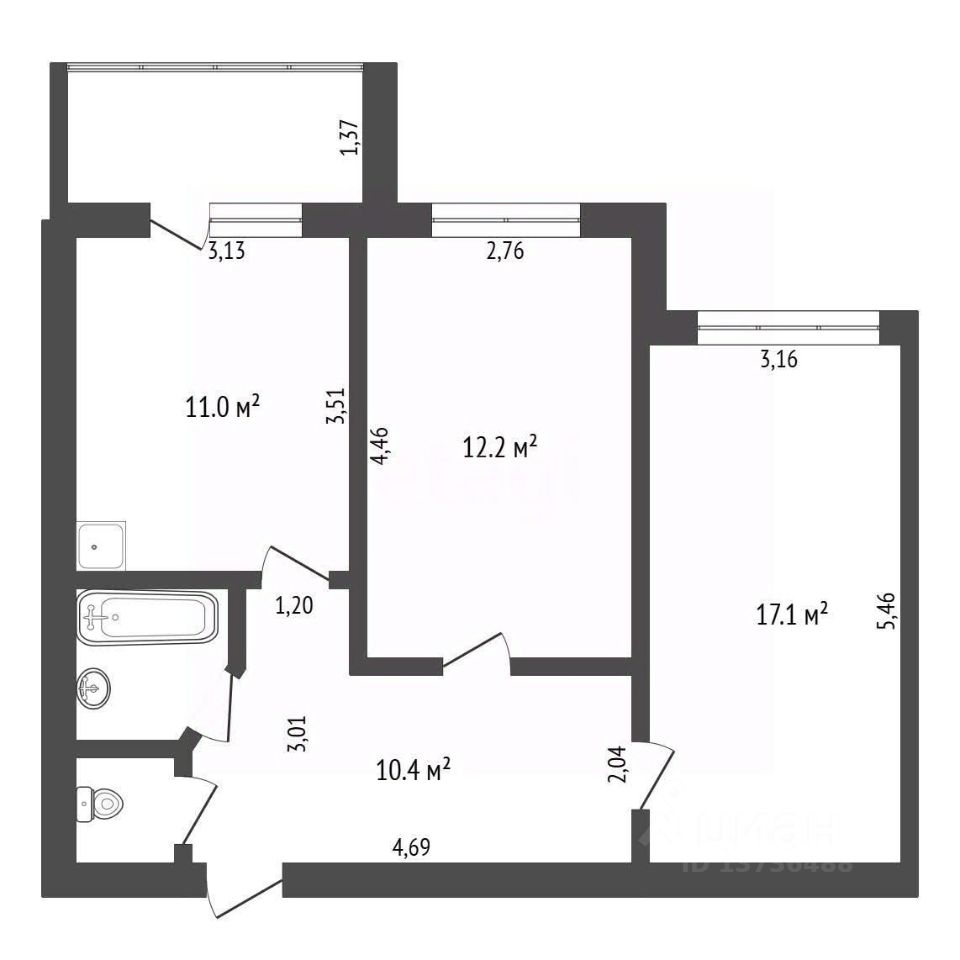 2-к, Свободная, 197