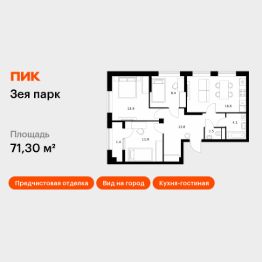 Продаётся 3-комн. квартира площадью 71,3 кв.м на 1 этаже 9 этажного дома (Корпус 7, Секция 1) проекта ПИК Зея парк. Светлый просторный подъезд на уровне земли, функциональная планировка, большие окна, предчистовая отделка. ''Зея парк'' - новый квартал со всем необходимым для комфортной жизни. До центра Благовещенска - 15 минут. Внутри ''Зея парка'' много места для тихих прогулок и активного отдыха. В каждом дворе будет парк с детскими и спортивными площадками. Рядом с домами пройдёт широкий пешеходный бульвар, где мы установим удобные скамейки и высадим кустарники и цветы и взрослые деревья. В квартиры и дворы сможет беспрепятственно проникать солнце благодаря переменной высоте корпусов - 9 и 16 этажей. В домах будут просторные и светлые подъезды с дизайнерской отделкой, витражным остеклением и двумя выходами на уровне земли: во двор и на улицу. В квартирах большие окна, застеклённые балконы и лоджии — будет светло и уютно даже зимой. Все квартиры сдаются с предчистовой отделкой: самые грязные и шумные работы к моменту выдачи ключей уже закончатся. На первых этажах домов разместятся магазины, кафе и другие сервисы, а на подземных — индивидуальные кладовые. В 1013 минутах пути на машине — парк Дружбы, аквапарк ''Плаза'' и ТРЦ ''Острова''. Рядом с жилым кварталом есть автобусная остановка, от которой можно добраться в любую часть города. Артикул 910175 (Застройщик ООО ''СЗ ''ПИК Благовещенск'')