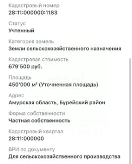 Код лота: РАД-435506. Реализуется на торгах. Продаются 3 земельных участка общая площадь 1 559, 4 га Амурская обл. , Бурейский район, вблизи пгт Новобурейский Характеристики - Общая площадь лота 1 559, 4 га (продаются вместе). - Форма продажи повышение начальной цены (Английский аукцион). Преимущества предложения - Большая площадь, подходящая для крупномасштабного сельхозпроизводства или инвестиционных проектов - Отсутствие зарегистрированных обременений - Разные участки могут иметь разные почвенно-климатические характеристики, что позволяет распределять культуры или виды деятельности и снижать риск неурожая. - Можно сочетать производства с разными требованиями: пашни, пастбища, сенокосы, кормопроизводство, лесопосадки, агротуризм. - Гибкость логистики и доступа к ресурсам - Раздельное размещение снижает вероятность единовременных потерь от локальных природных или техногенных событий. - Легче привлекать разных арендаторов или партнеров под конкретные участки, повышая доходность и ликвидность по частям. Более подробная информация о земельных участках указана в информационном сообщении к лоту. https://catalog. lot-online. ru/index. php?dispatch=products. view&product_id=1582402