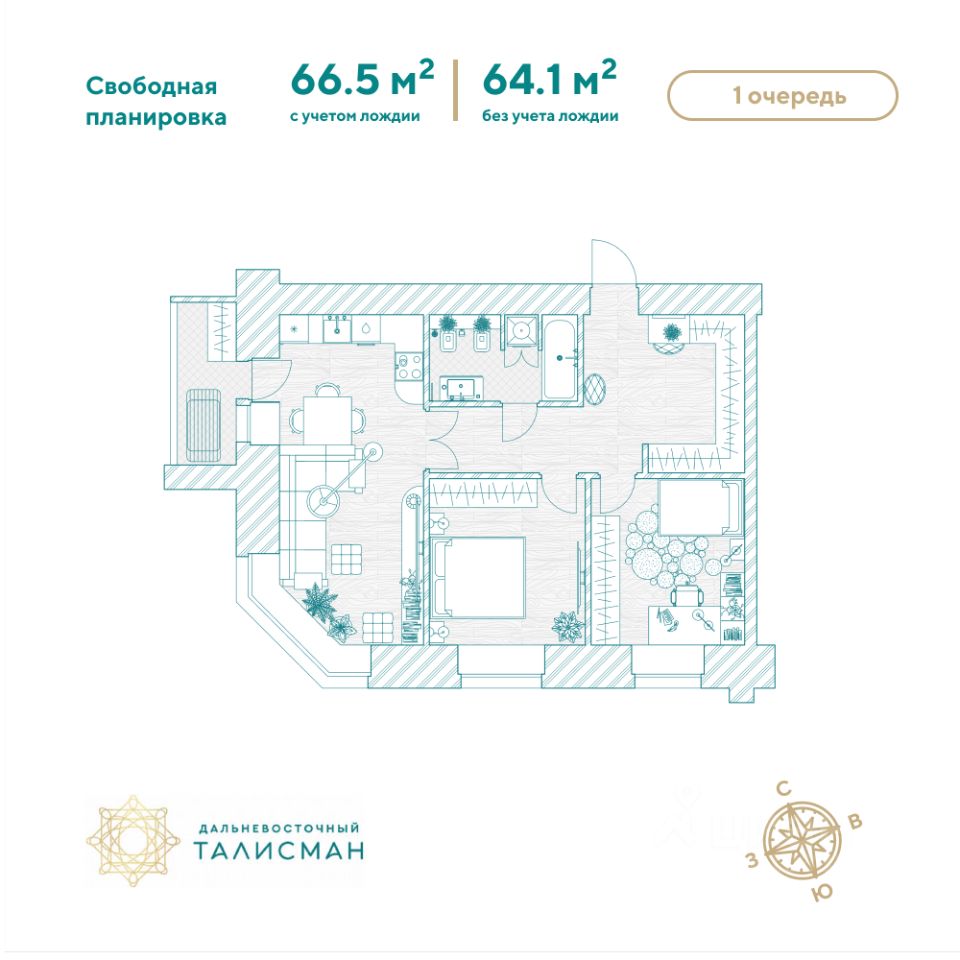 Продаётся 1-комнатная квартира в сданном доме (Партизанская, 64/2), срок сдачи: III-кв. 2025, общей площадью 66.6 кв.м., на 11 этаже. Жилой комплекс ''Дальневосточный Талисман'' расположен в 93 квартале Благовещенска.