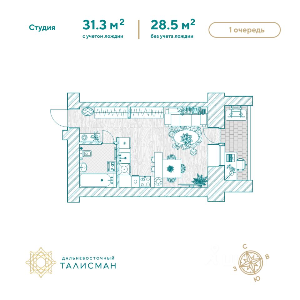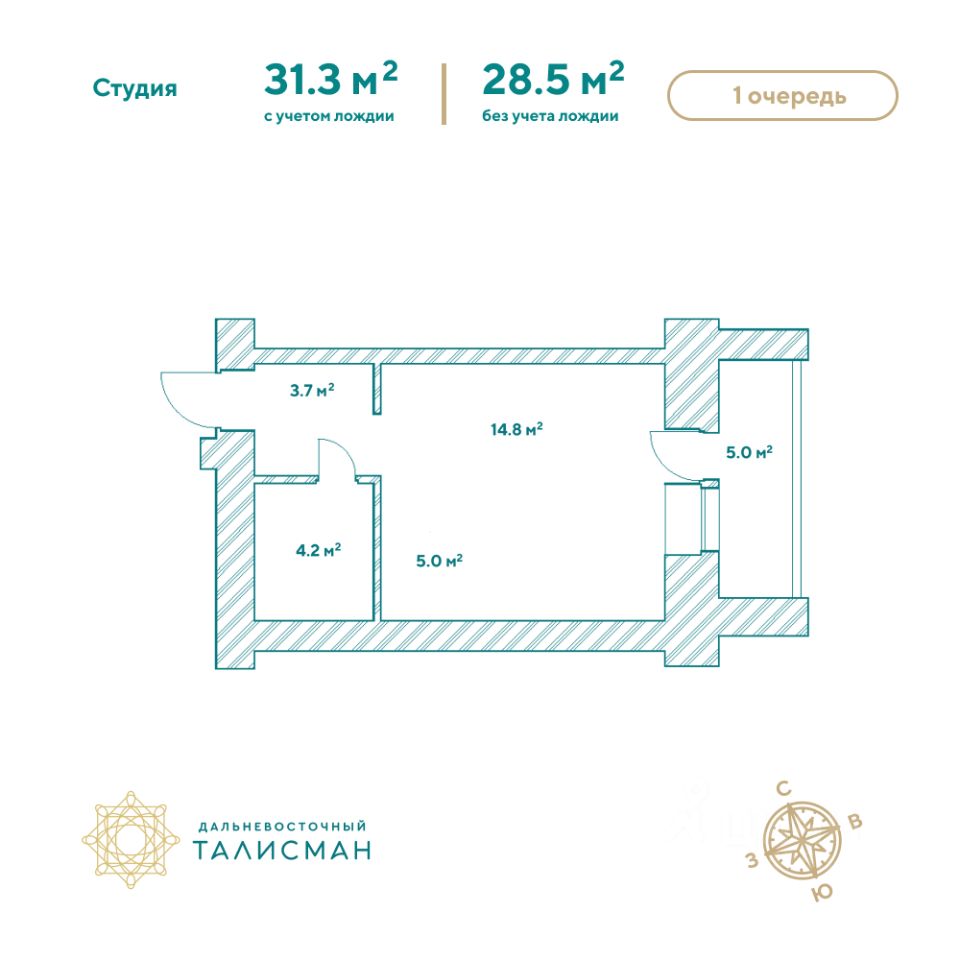 Продаётся 1-комнатная квартира в сданном доме (Партизанская, 64/2), срок сдачи: III-кв. 2025, общей площадью 31.2 кв.м., на 9 этаже. Жилой комплекс ''Дальневосточный Талисман'' расположен в 93 квартале Благовещенска.