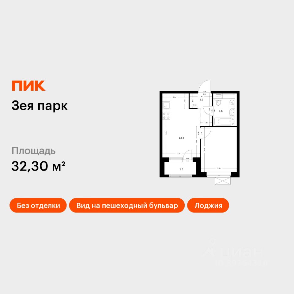 Продаётся 1-комн. квартира площадью 32,1 кв.м на 15 этаже 16 этажного дома (Корпус 2, Секция 1) проекта ПИК Зея парк. Светлый просторный подъезд на уровне земли, функциональная планировка, большие окна, без отделки.