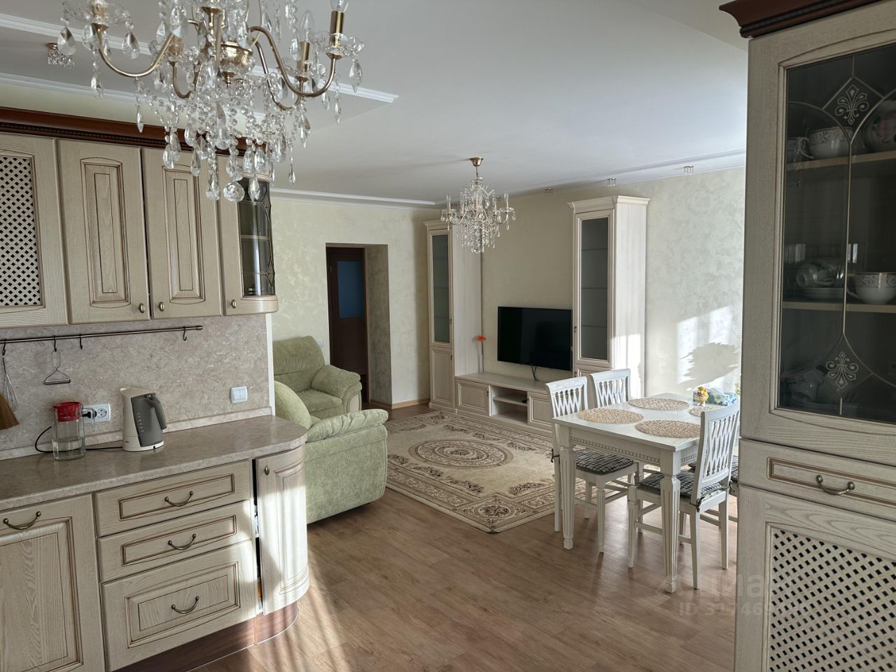 Квартира очень светлая ,тёплая, меблированная, мебель итальянского производства из натурального дерева.