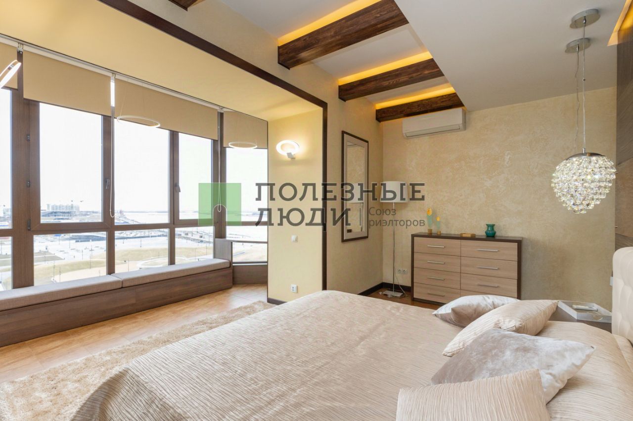 В квартире: Просторная гостиная с панорамным остеклением. Изысканная кухня, оборудованная современной техникой. Уютная спальня с гардеробной. Просторная ванная комната с премиальной сантехникой.