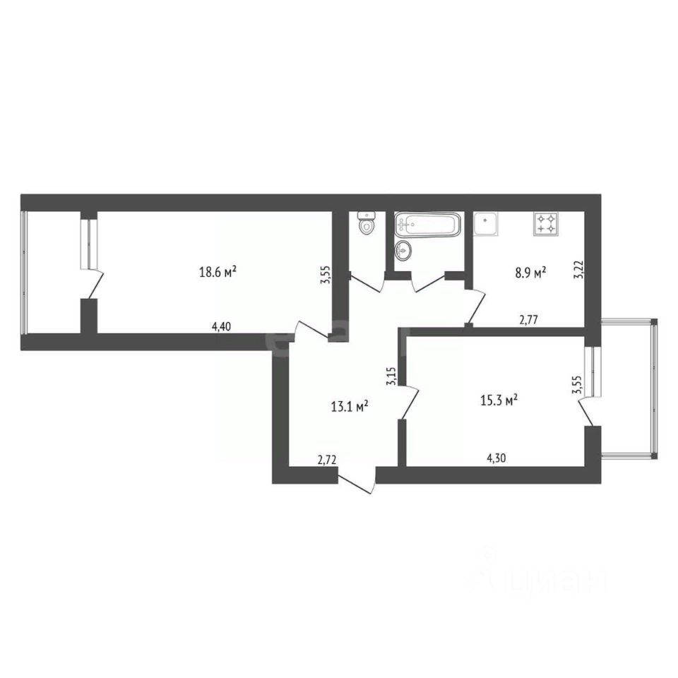 Квартира тёплая, подходит для комфортного проживания в любое время года.