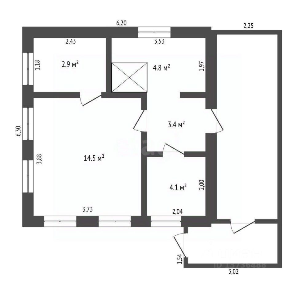 Общая площадь29,7 м2