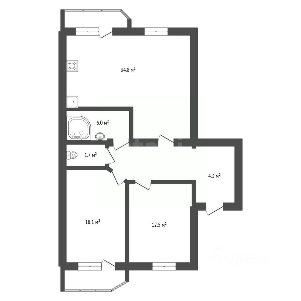 Светлая, солнечная квартира (два балкона, стороны запад-восток).