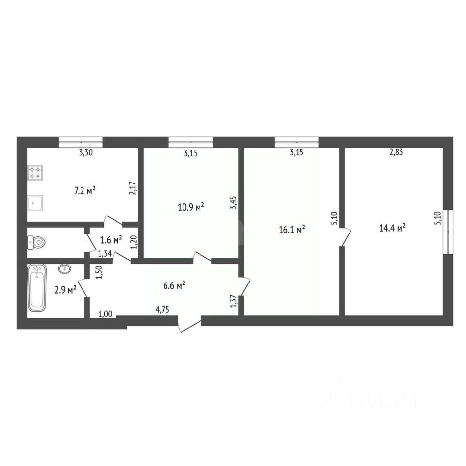 Планировка квартиры функциональна: все комнаты изолированы, что позволяет гибко использовать пространство.