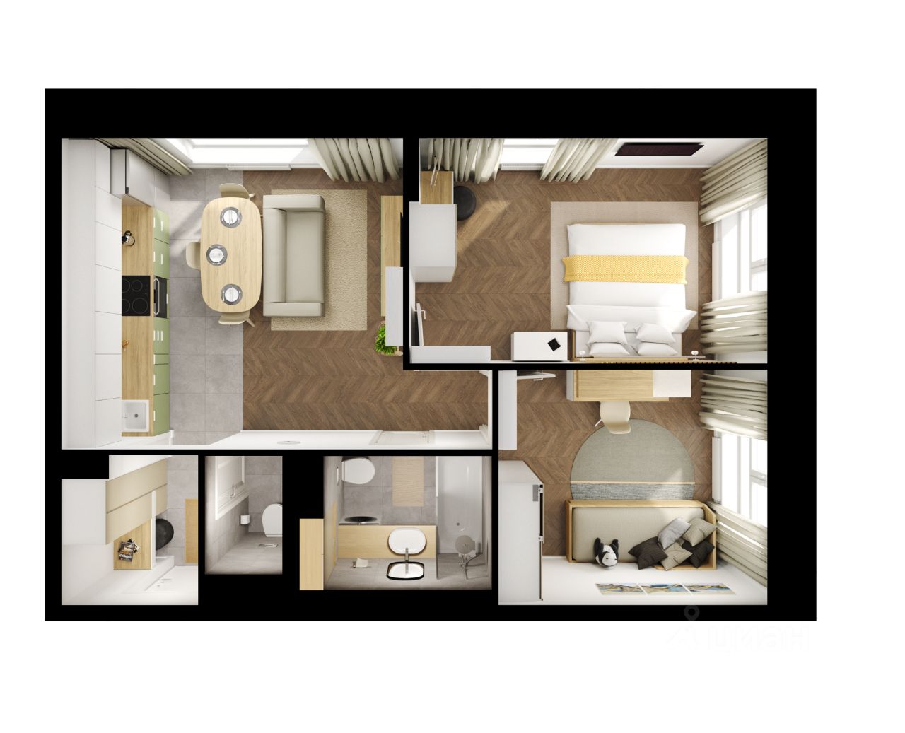 В квартирах большие окна, застеклённые балконы и лоджии — будет светло и уютно даже зимой. Все квартиры сдаются с предчистовой отделкой: самые грязные и шумные работы к моменту выдачи ключей уже закончатся.