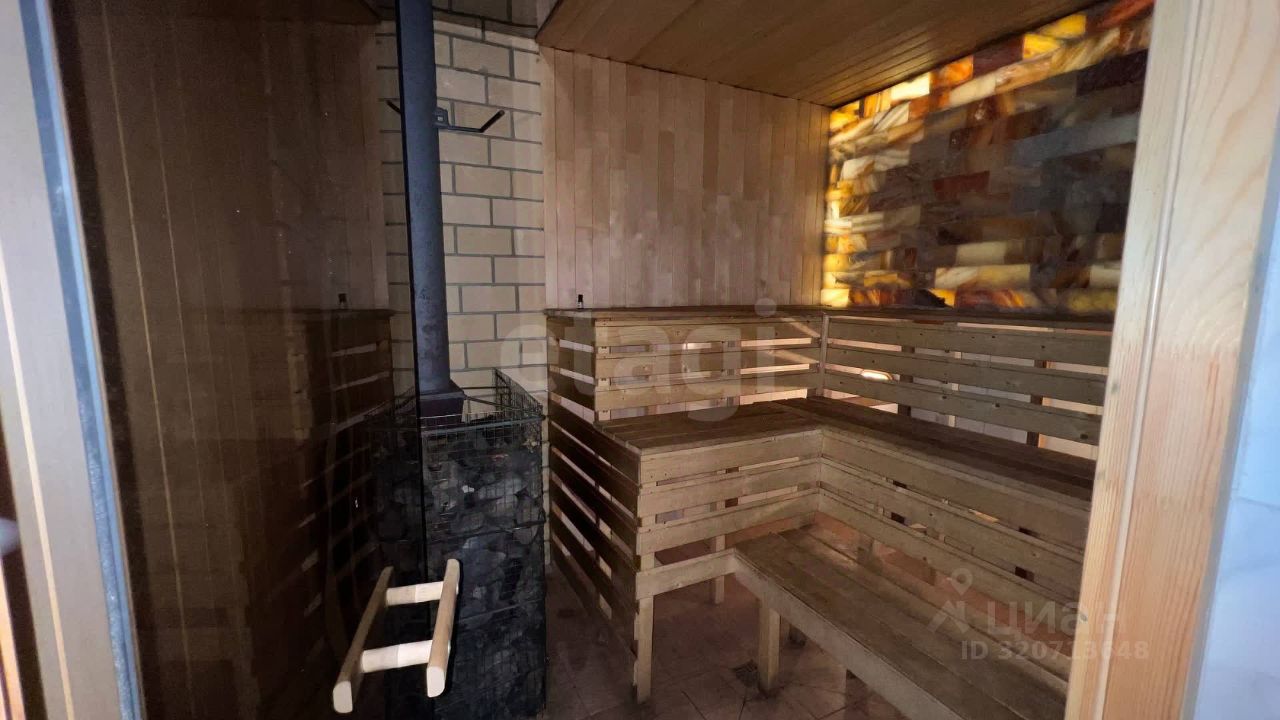 Банный комплекс включает два этажа. На первом уровне расположены парная, душевая, закрытый бассейн, просторная кухня и техническое помещение. Второй этаж отведен под три комнаты отдыха, санузел и террасу с панорамным видом на реку. Инфраструктура участка дополнена парковкой, что обеспечивает комфорт для гостей и жильцов.