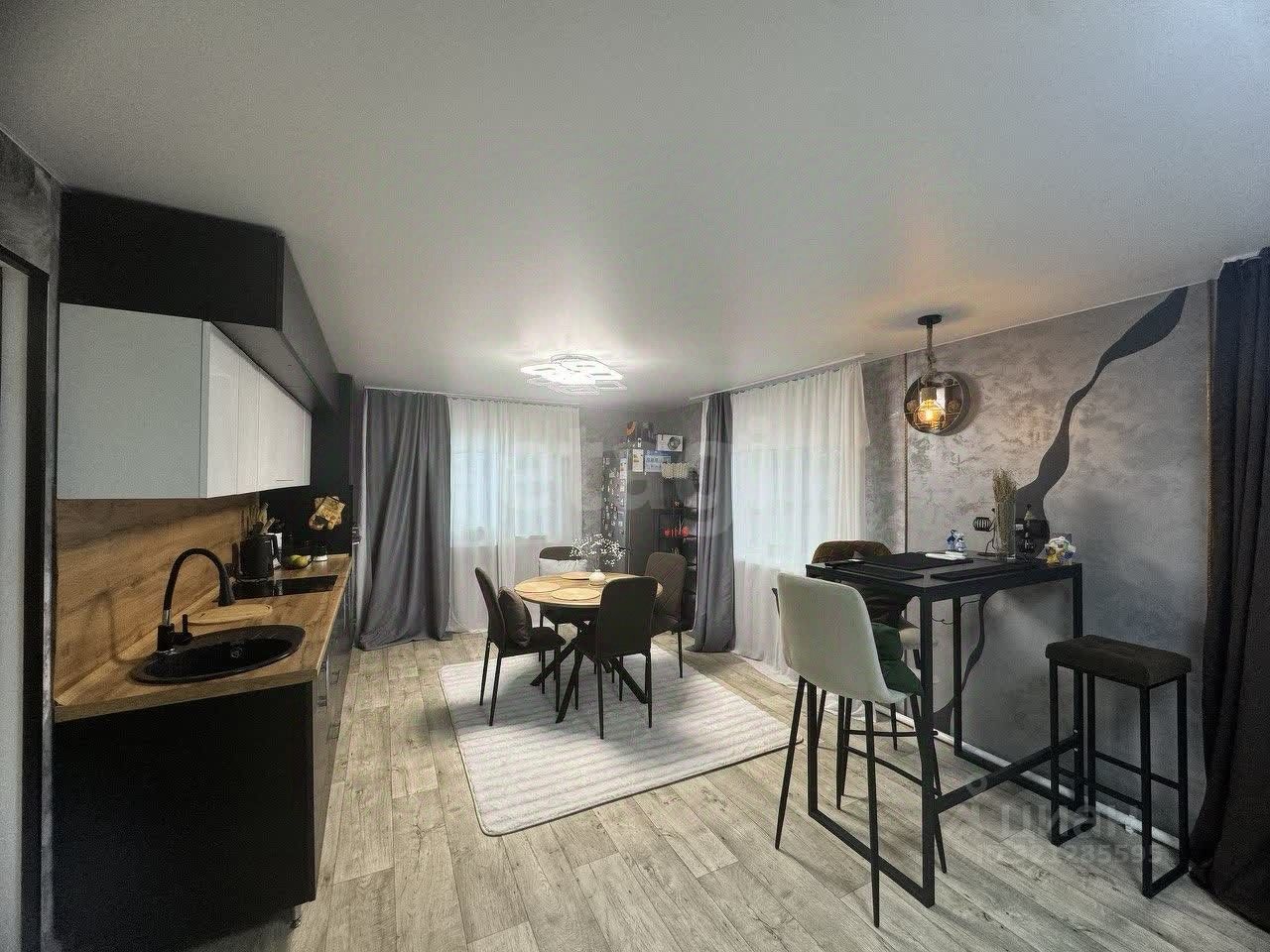 **Отделка и интерьер:** * **Материалы:** Использованы дорогие и качественные материалы: кварцвиниловый ламинат (влагостойкий, износостойкий), декоративная штукатурка.