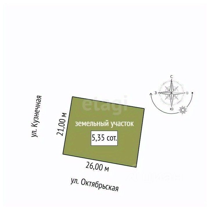 Участок находится в центре города на пересечении ул. Октябрьская-Кузнечная. Подходит под строительство индивидуального жилого дома.