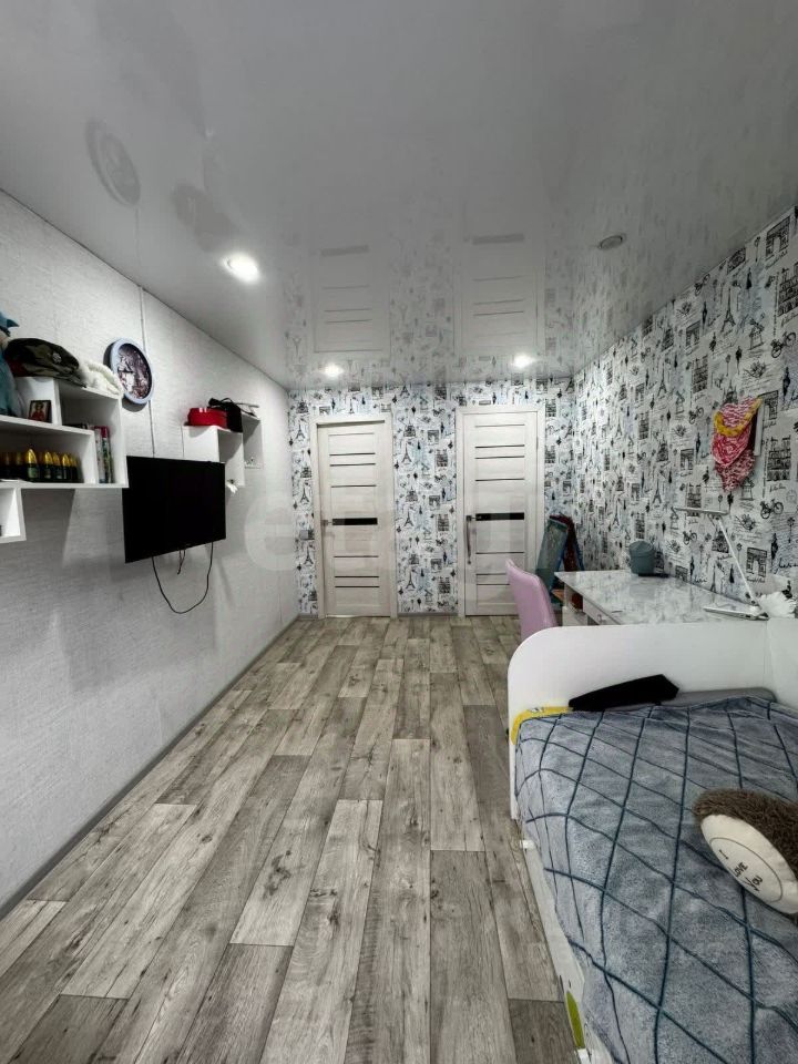 Дом площадью 121 м² расположен по ул. 9 Мая и сочетает в себе надежность загородного жилья с современным уровнем комфорта. Основной материал стен — бревно, дополнительно усиленное металлосайдингом, что обеспечивает долговечность и улучшенную теплоизоляцию. Кровля выполнена из андулина, окна — пластиковые с высокими показателями энергоэффективности. Внутренняя отделка выполнена с использованием качественных материалов, создавая аккуратное и практичное пространство.