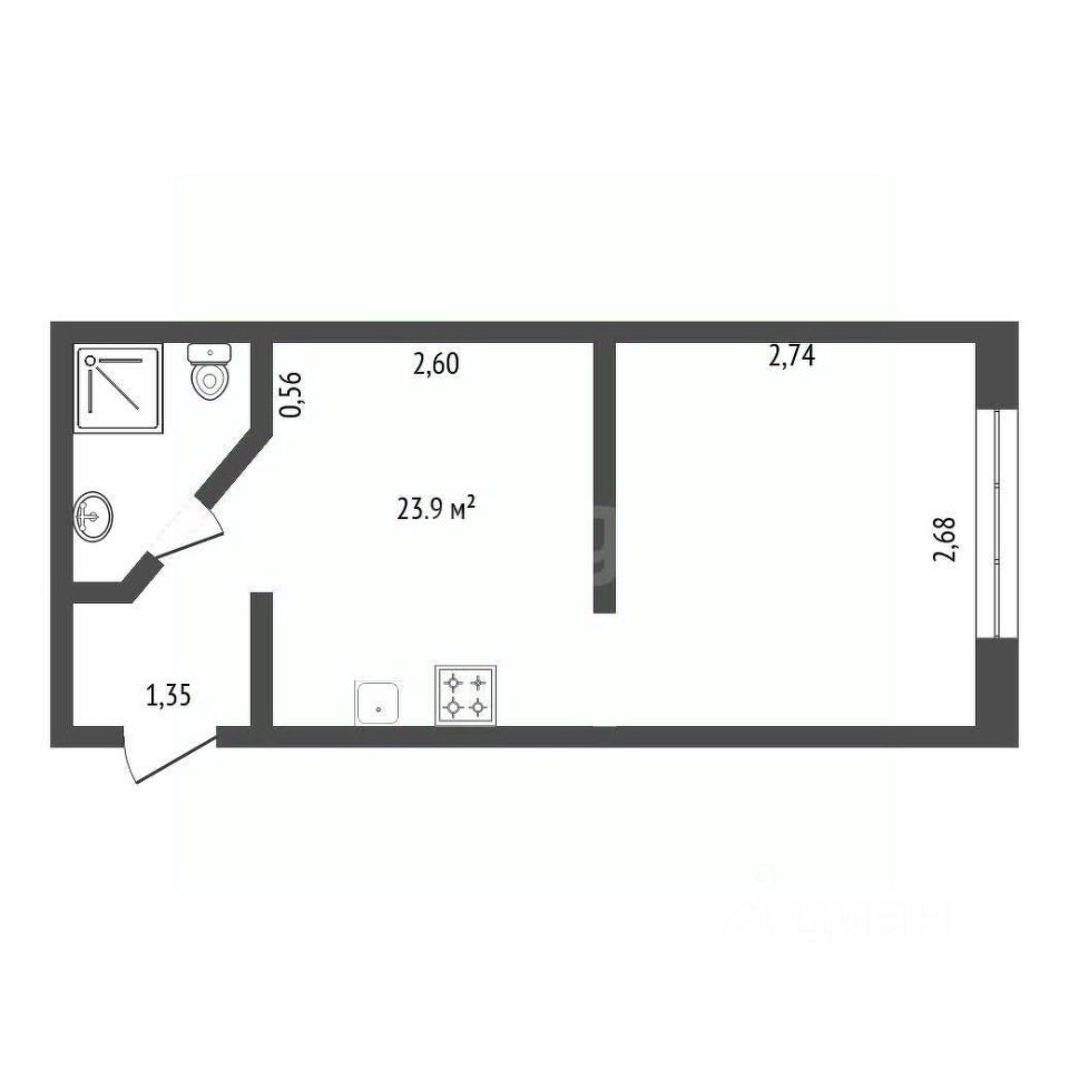 Продаю квартиру-студию в с. Чигири ул. Центральная, 11/1. Студия площадью 23,9 кв.м, расположена на первом этаже двухэтажного кирпичного года 1965 года постройки.