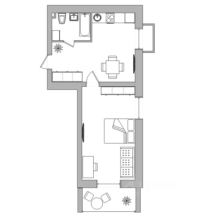 Площадь: 49 кв.м. — просторно для одного или пары.
