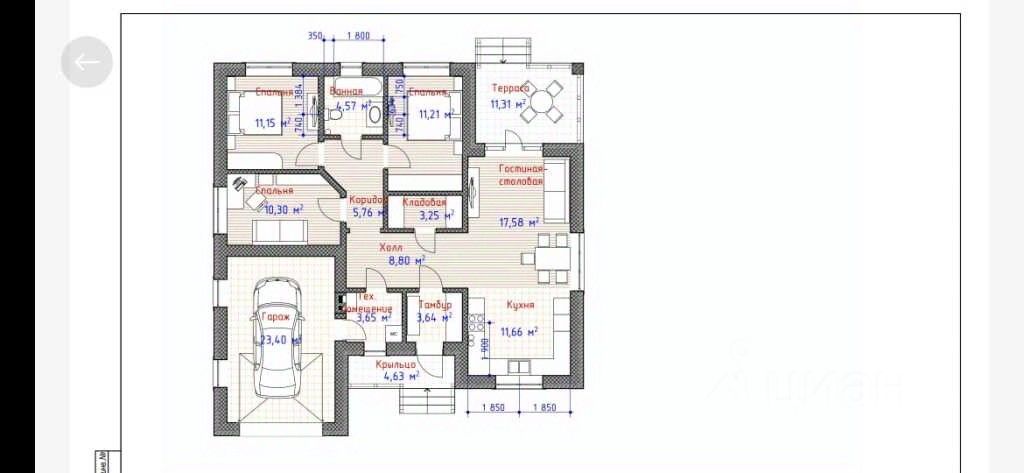 Удобная планировка с выделенной зоной кухни-гостиной и встроенным гаражом.