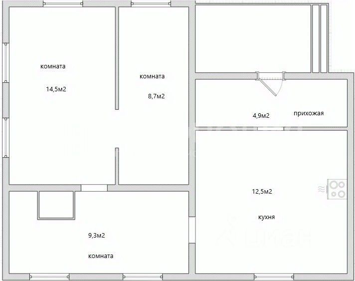 Внутри дома выполнен косметический ремонт, состояние которого можно охарактеризовать как отличное. Все окна заменены на современные металлопластиковые (МПО). Планировка дома включает две комнаты площадью 14,5 м и 8,7 м, а также просторную кухню площадью 12,5 м, где с комфортом может разместиться вся семья.