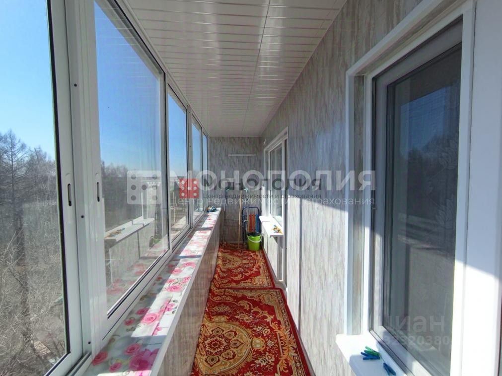 Большая лоджия утеплена и обшита пластиковыми панелями, остеклена