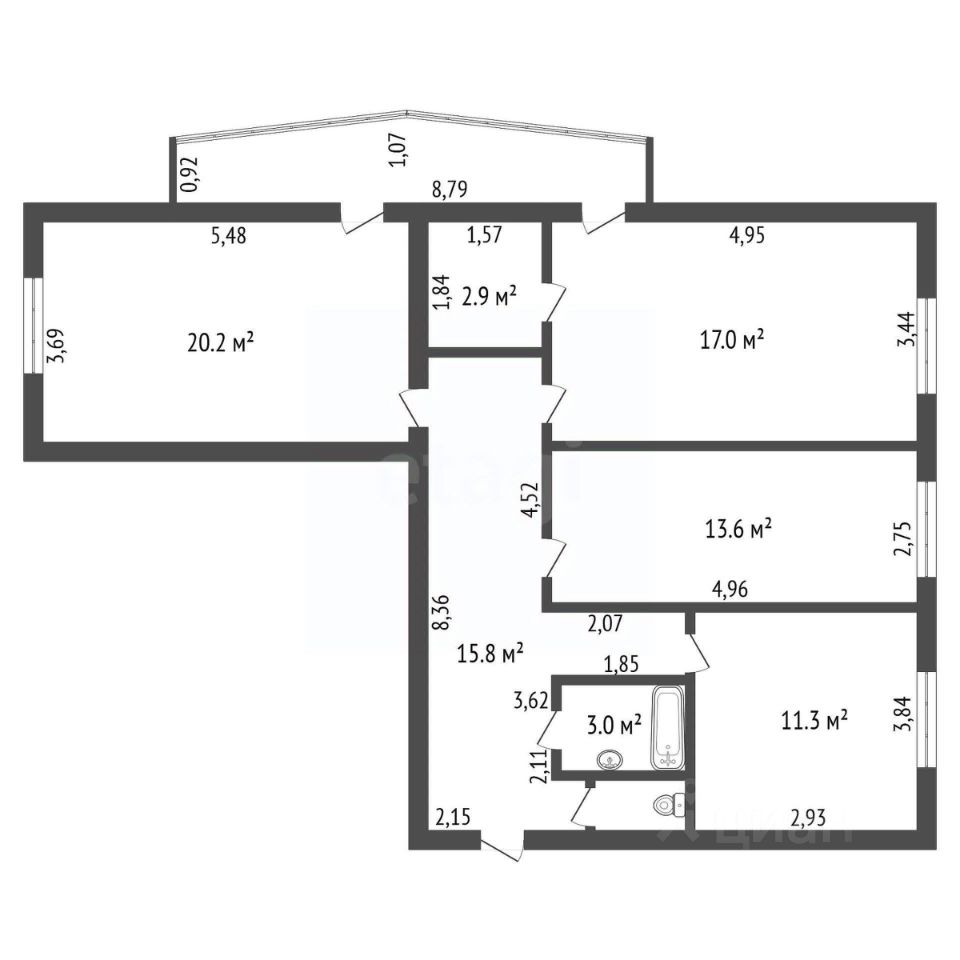 Общая площадь 87,5 кв.м.Большая кухня-гостиная.