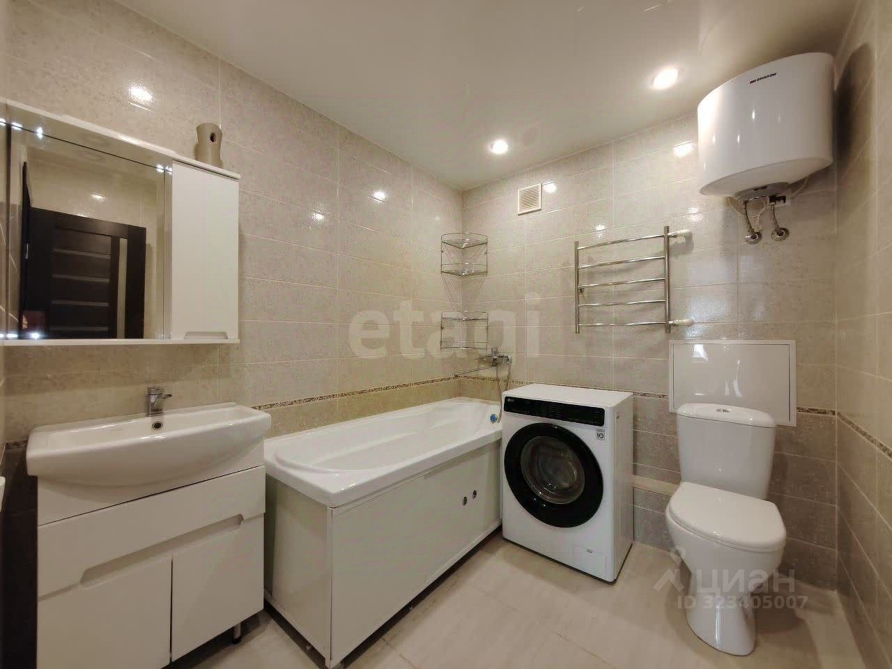В квартире сделан современный, качественный ремонт. Совместили кухню с комнатой, совместили ванную и туалет, между прихожей и залом убрали перегородку. Балкон застеклен.