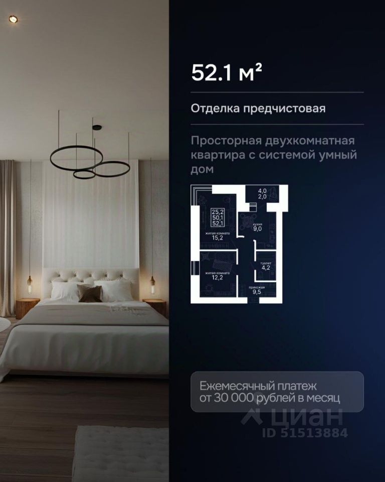 Арт. 80092056. Просторная двухкомнатная квартира с системой умный дом!
