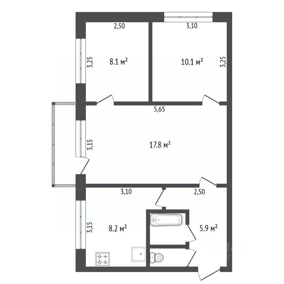 Адрес: ул. Строителей, 109 Этаж: 5 из 5 Площадь: 53,5 м² Год постройки: 1977