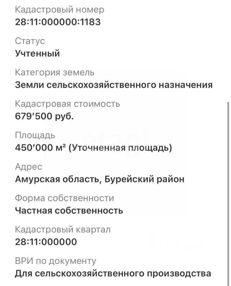 В продаже земельный участок в Бурейском районе.