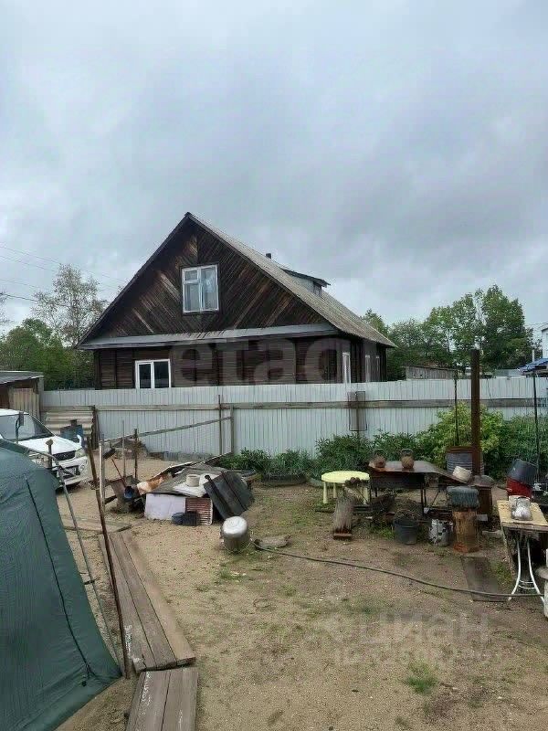 В продаже двухэтажный дом из брусьев на 6 сотках земли, который находится в черте города. Четыре комнаты (две комнаты расположены на втором этаже), кухня, прихожая. На территории летний душ и две кладовые. Ворота, дом огорожен забором. Есть место для парковки машины. В доме печное отопление, вода привозная. Дом находится в тихом, спальном районе.
