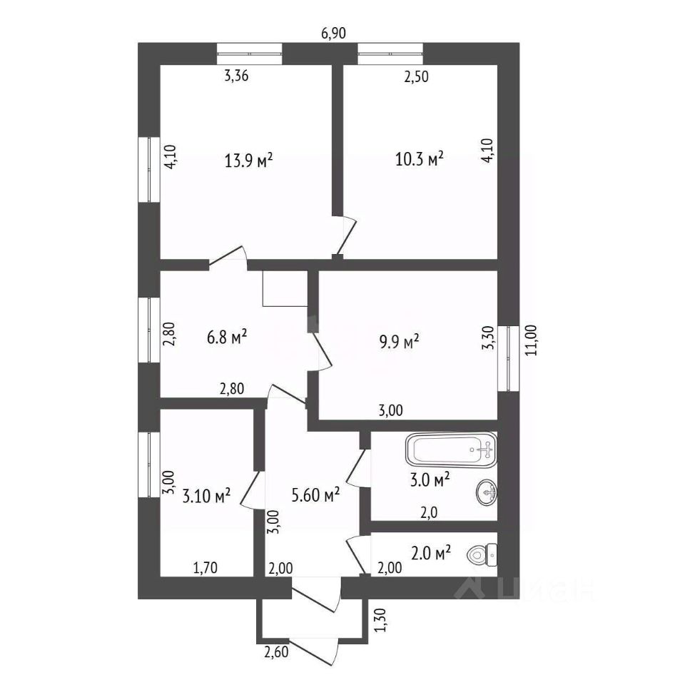 Общая площадь52,6 м2