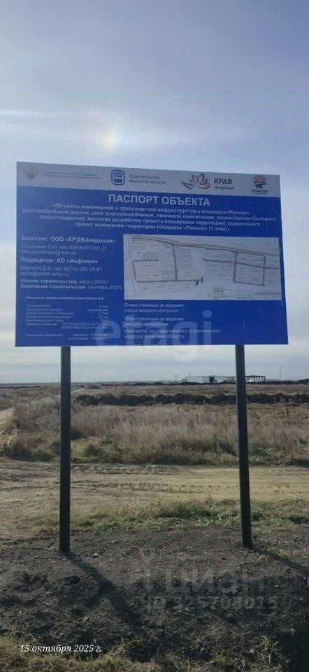 Земельный участок площадью 10 гектаров расположен в перспективном районе близ села Ровное, в 17 километрах от Благовещенска. Территория входит в зону опережающего развития ''Приамурская'', что определяет её инвестиционный потенциал и активное развитие инфраструктуры вокруг. Участок имеет надёжный подъезд по асфальтированной трассе Благовещенск — Белогорск, что обеспечивает отличную транспортную доступность в любое время года. Важный фактор — территория исторически не подвергалась подтоплению. По границе участка проходят линии электропередач, что упрощает технологическое присоединение.