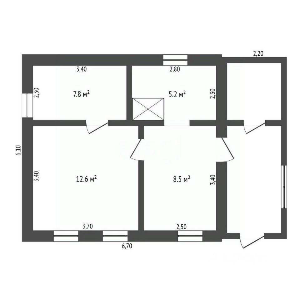 В доме 2 комнаты, кухня, коридор, кладовая, подполье для хранения овощей,