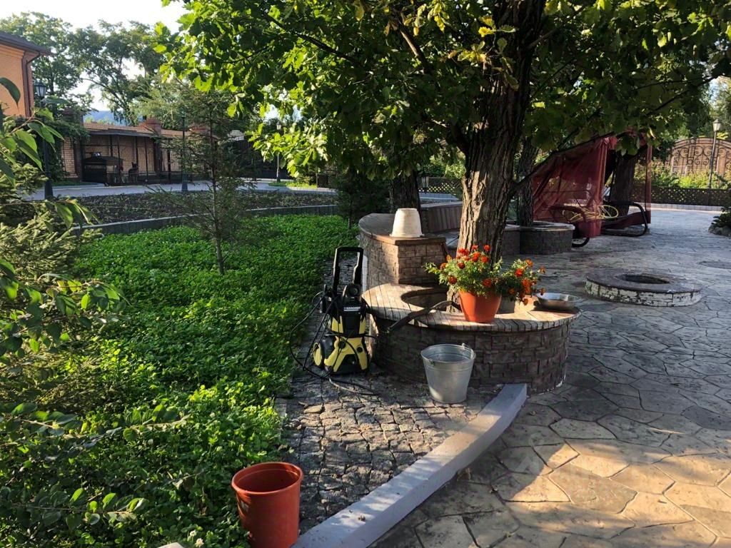 Дом 200 м готов к проживонию, дом 600 м необходим ремонт, на участке находятся бассейн, пруд, фонтан, монгальная зона под навесом, выполнено озеленение.