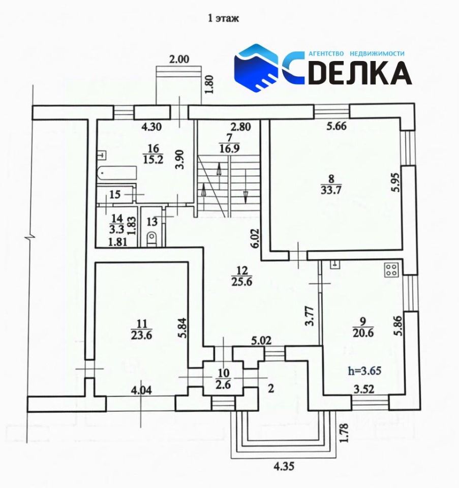 — Дом из кирпича, перегородки кирпич, перекрытия бетонные.