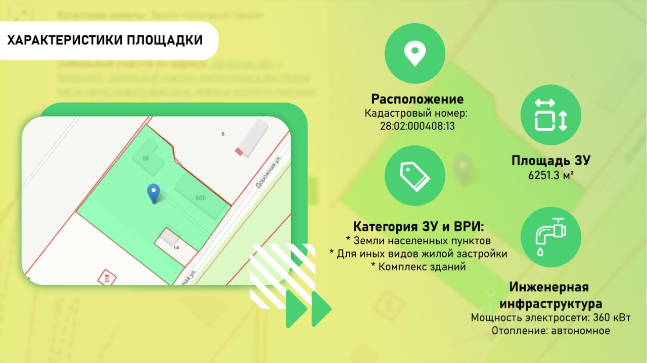 Продается земельный участок 28:02:000408:13 с гаражным комплексом от собственника общей площадью 6251,3 кв. м.