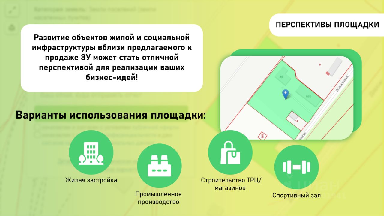 Удачное расположение: поблизости к продаваемому участку ведется строительство нового жилого комплекса в микрорайоне Южный и ледовой арены.