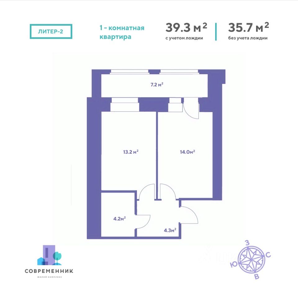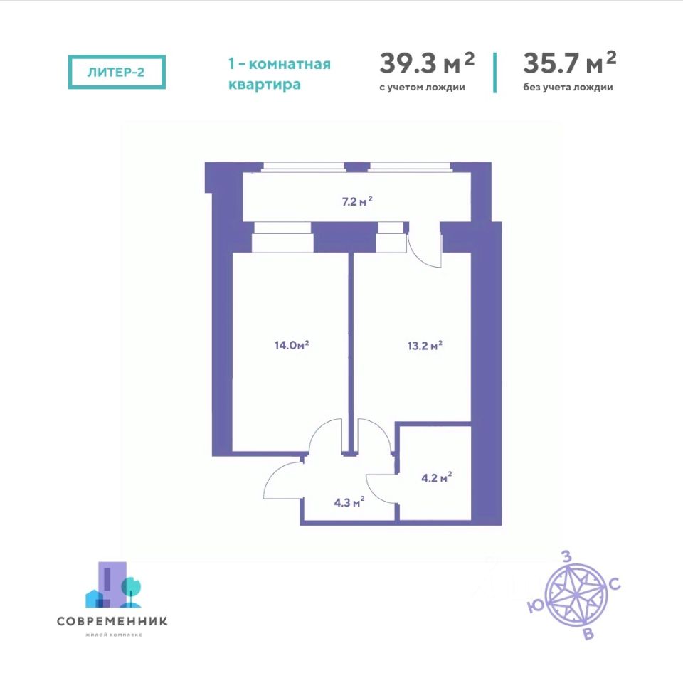 Общая площадь39,3 м2