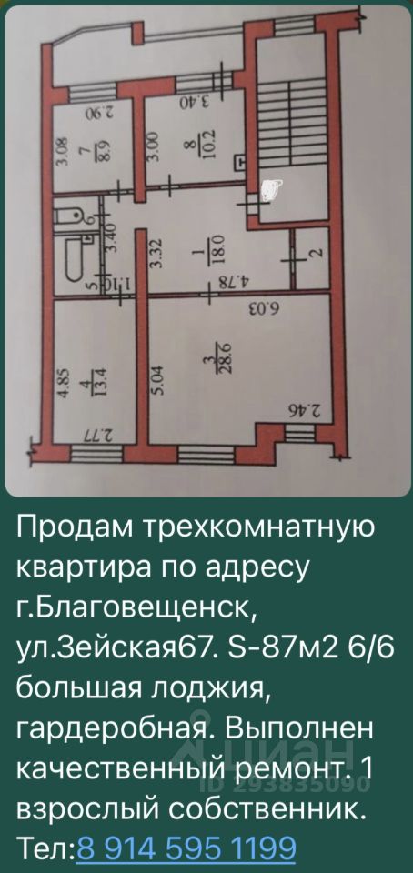 продам трех комнатную квартиру. три большие светлые теплые спальни, просторная кухня, гардеробная, большая (просто шикарная) лоджия.